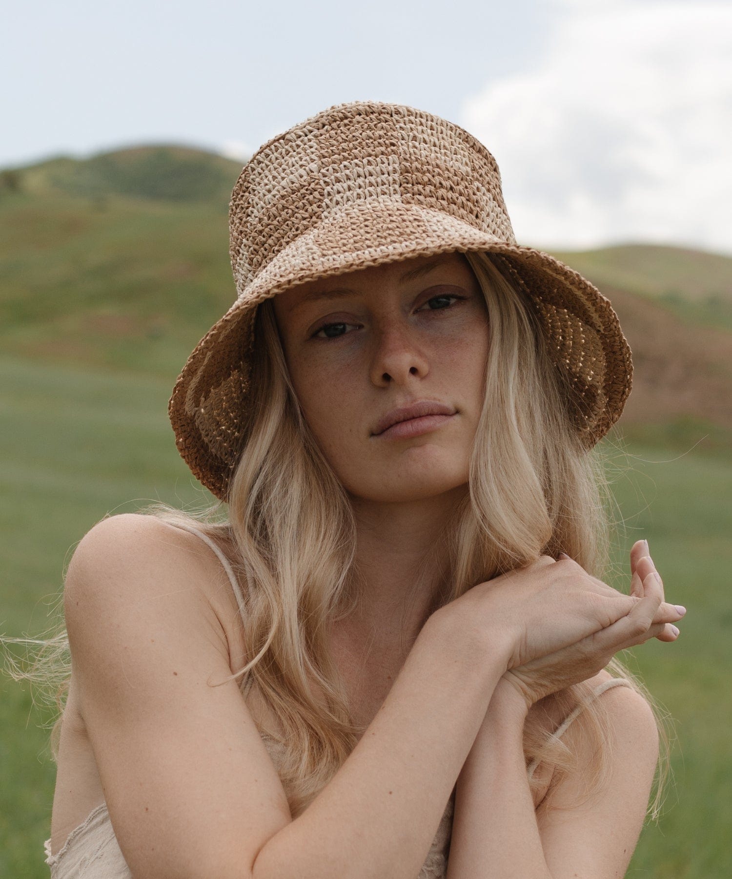 Notice the round gold Gigi Pip pin detail on the back of the crown, effortlessly completing the look.