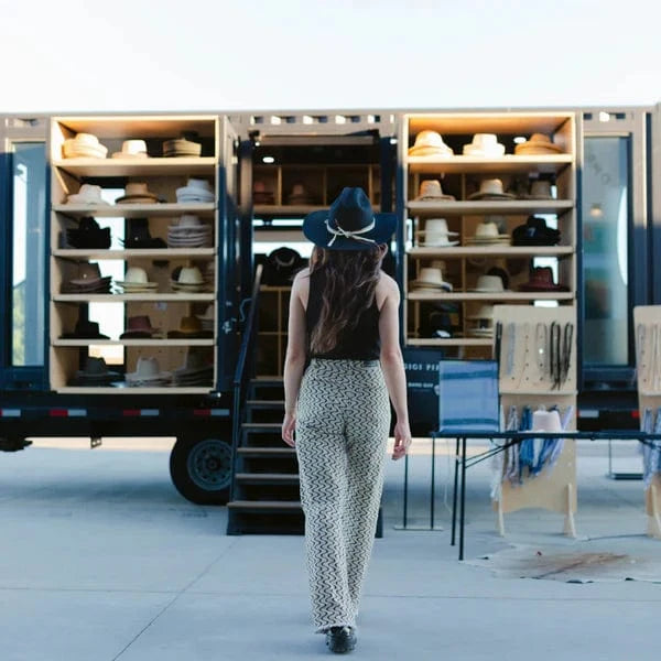 Our mobile showroom travels nationwide, delivering a personalized shopping experience directly to your event location. With over 750+ hats beautifully displayed for an in-person experience like no other.