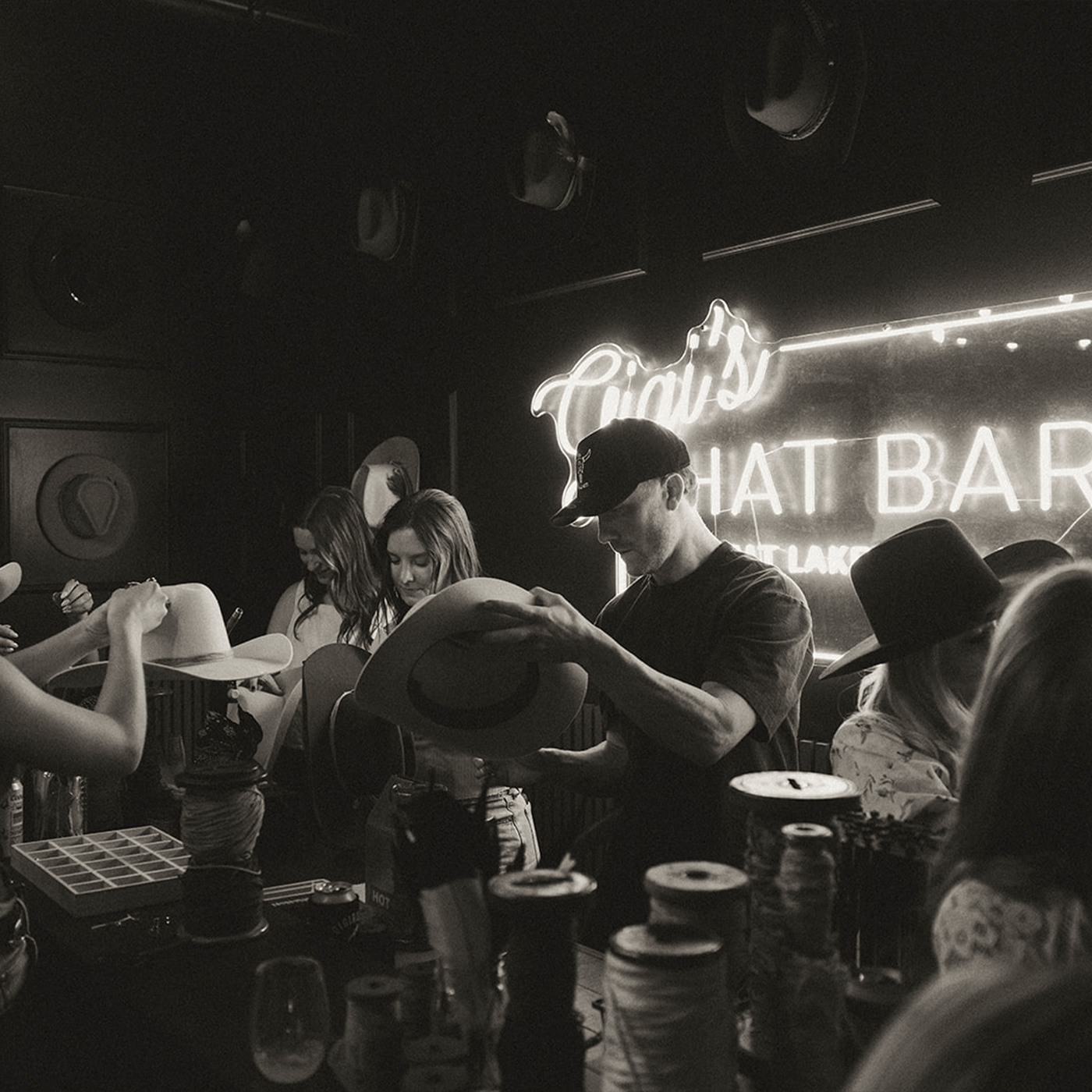 Introducing Gigi Pip’s newest gem—a hidden speakeasy nestled in the heart of downtown Salt Lake City. This elevated western-inspired venue offers a one-of-a-kind setting for hosting custom hat events, perfect for both private parties and corporate gatherings. With its moody lighting, vintage decor, and refined rustic charm, the space blends Prohibition-era ambiance with modern Western flair.